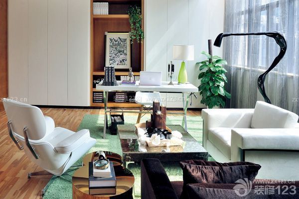 書房是一個工作空間,但絕不等同于一般的辦公室,它要和整個家居的氣氛相和諧,同時又要巧妙地應用色彩、材質變化等手段來創造出一個寧靜溫馨的工作環境。