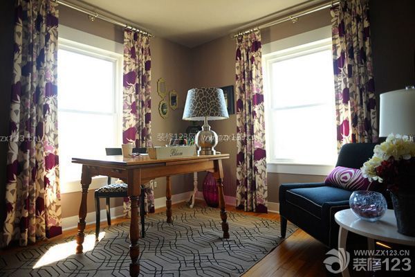 書房的色彩力求穩重、優雅,設計時最好能與使用者的性格、年齡一并考慮,使整體色調寧靜而舒爽。窗簾的配置亦很重要,一般以選用既能遮光,又有通透感覺的淺色紗簾比較合適。強烈的日照通過窗幔折射變得溫婉、柔和,使眼睛免受光線的直接刺激。