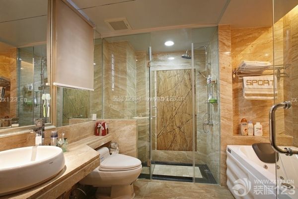 小面積衛浴間如果是個暗衛,會讓人覺得不透氣。對于這樣的小衛浴間,采光非常重要。可以把小衛浴與臥室或客廳相隔的墻壁改成通透的玻璃,玻璃的隔斷墻,讓光透進衛浴空間,增加空間通透感,也可以擴大視覺效果。