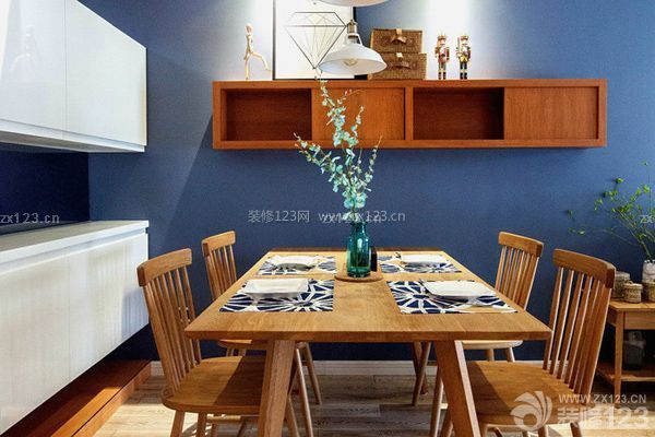 看到這樣的餐廳設(shè)計,不知道大家是不是和小編一樣被深深的吸引了呢,非常有個性的藍色調(diào)設(shè)計讓這個餐廳散發(fā)出一種沉靜的美感。光滑的木質(zhì)桌面處理讓原木材質(zhì)具備了現(xiàn)代之美,澄凈的藍色系背景墻與餐桌的椅面相呼應(yīng),給小戶型層次之美。