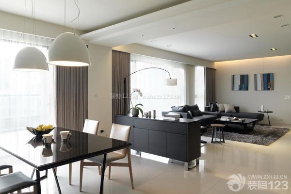 很多小戶型住房都采用客廳或門廳兼做餐廳的形式,在這種格局下,餐區的位置以鄰接廚房并靠近客廳最為適當,它可以縮短膳食供應和就座進餐的走動線路,同時也可避免菜湯、食物弄臟地板。餐廳與客廳之間可采用靈活處理,如用壁式家具做閉合式分隔,用屏風、花槅做半開放式的分隔。但需要注意與客廳在格調上保持協調統一,并且不妨礙通行。