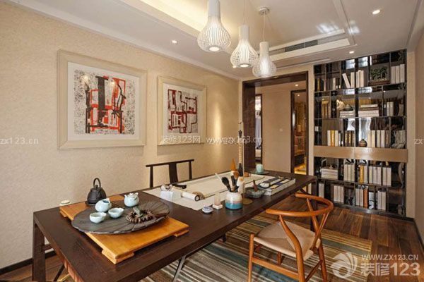大型的書架收納了整面墻壁的書,還設(shè)置了屏風(fēng)樣式的隔斷,是一個很好的家居裝飾,凸顯古色古香的優(yōu)雅特點。