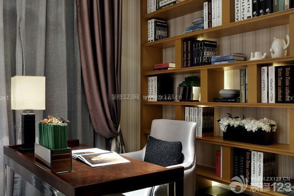 隨著閱讀量的提升,小巧的書桌、書柜已經(jīng)不能滿足龐大書籍的擱置,利用靠墻的空間,安置書架,書籍整齊有致,可以讓人充分的體驗到讀書的樂趣。從屋頂延伸到地板的書架達(dá)到了空間利用極致的效果,收納功能更是強(qiáng)大。整面墻的書柜雖然可以收集很多東西,但是有著致命的弱點,如果你的書柜沒有任何裝飾格子的話,那整面墻看起來會很呆板。在書架的選擇上可以選擇樣式新穎而創(chuàng)意的造型,添加一張?zhí)梢危屓吮陡惺孢m。書房很大,就在一角開辟出一整面墻的書架吧。棕黑色書架更顯沉穩(wěn)大氣,同時也具備很強(qiáng)的收納能力。書架的頂部展示著主人個性而獨特的裝飾品,有效緩和了嚴(yán)肅的氣氛,書架旁的綠植,更是形成一道美麗的風(fēng)景線。