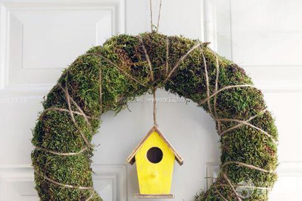 花環的中間掛一只小小的鳥舍,呼喚春天的到來。