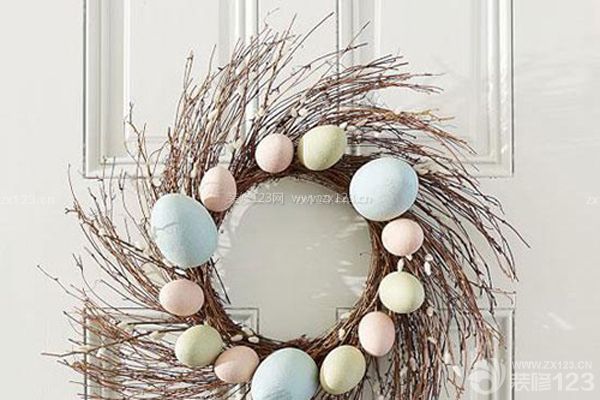 團成漩渦狀的枝條,配上一圈糖果色的雞蛋,漂亮又可愛。