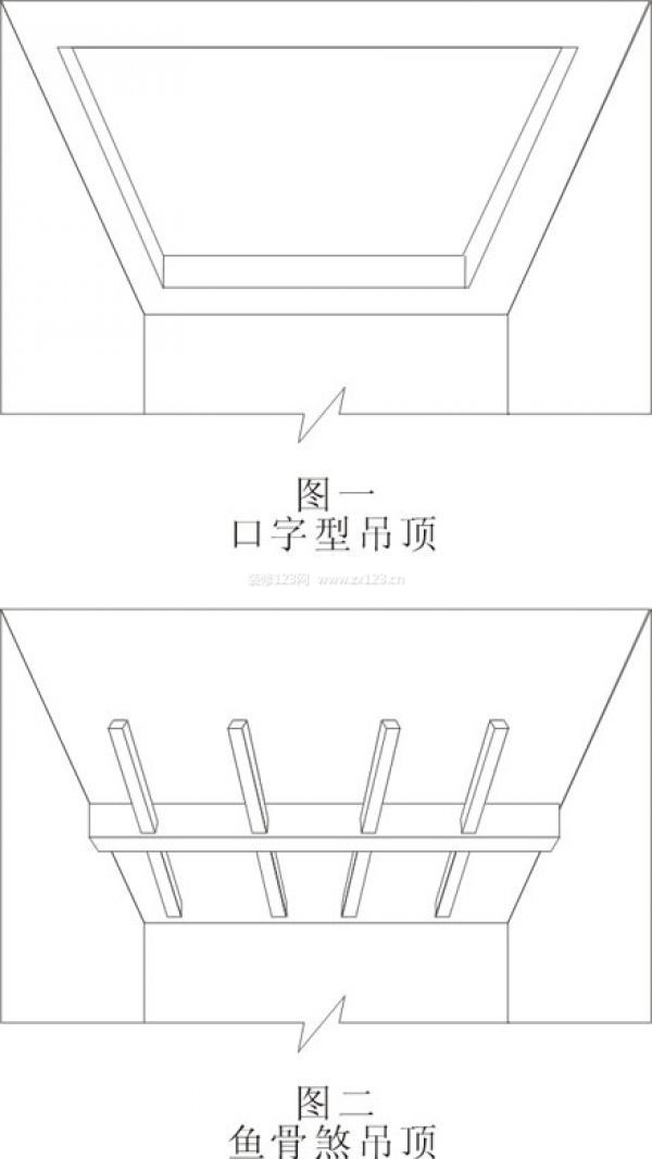 天花吊頂首先忌諱使用口子型,口字形吊頂再中間加上人就變成了一個囚字,所以這里建議大家少使用口字形吊頂(圖一)