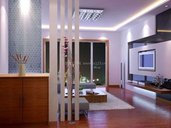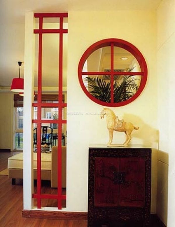 客廳玄關的間隔應以下面實心,防止外泄,上面以通透為主。因此可以用通透的磨砂玻璃或者空心的博古架之類的。