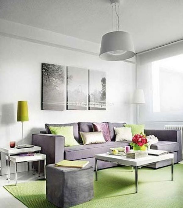 客廳選用的沙發是轉角布藝沙發,它造型時尚美觀,精致小巧的體積不會占用太多的客廳面積,是小戶型家庭最適合搭配的客廳家具之一。而客廳房頂并沒有采用傳統的大氣型吊頂,而是裝了個頗具造型感的簡易白色吊燈,給客廳的視覺空間加分不少。開闊的窗戶正對客廳,保持室內空氣持久清新,也再次起到了擴大客廳面積的作用。