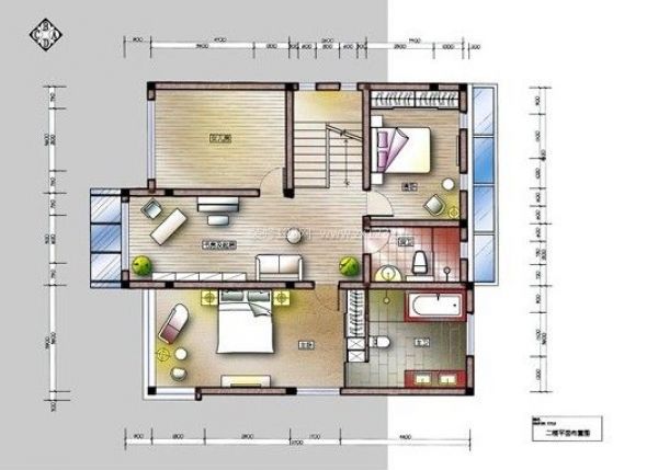2樓平面圖二樓將原臥室和小起居合拼為一個通間,使陽光更流暢到每個角落。