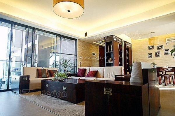 明清風韻的沙發,箱柜式的茶幾,鏤空木雕花窗把古雅的中式經典元素提純、拆分,再解構、升華,在中式悠遠的古風中融入典雅的現代風情,摒棄刻板與沉悶,體現大氣、沉穩與莊重,傳統中式的高貴中也蘊含著現代的雅致,整個設計從民族、中國傳統的角度去挖掘“人文宅院”的內涵,喚起現代生活的理性回歸。