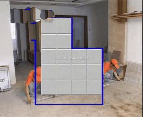原則五:沿著這個(gè)基準(zhǔn)線鋪設(shè)第一塊基準(zhǔn)磚(設(shè)法參照鋪地磚九步走,(地磚九步法小編會(huì)在下一篇文章中詳細(xì)介紹)),那么后面沿著基準(zhǔn)線設(shè)出的地磚才會(huì)橫豎排垂直,不拉線。或不精確的拉線,很難達(dá)到規(guī)矩的效果。