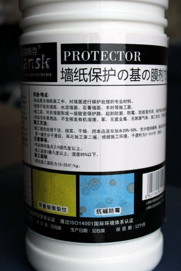 墻紙基膜是一種專業配套墻紙施工使用的墻面處理材料。他能在墻面上形成一層致密的保護膜,防止墻面內的水分、堿性物質等外滲,保護墻紙,還能有效使墻紙更 好粘附在墻面上。他是一種水性環保材料,無味,無毒,對人體無副作用,高科技環保產品,是替代傳統清漆的新一代墻面處理劑。(貼墻紙:選基膜還是清漆)