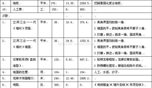 更多的區域詳情請點擊下載>裝修費用明細表詳