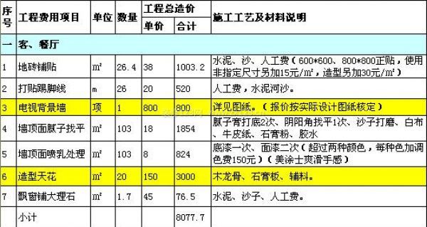 更詳細的報價請點擊下載查看>房屋裝修半包報價清單模版一覽表