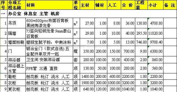 上海廠房裝修預算清單(二)