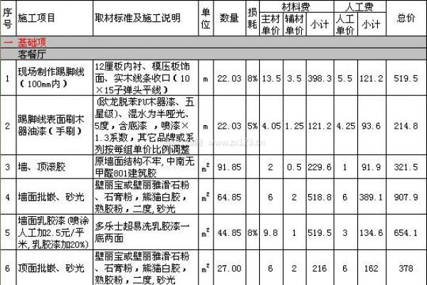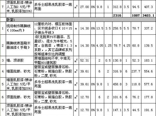 上海裝修公司報價表(一)