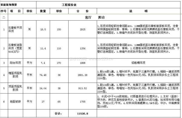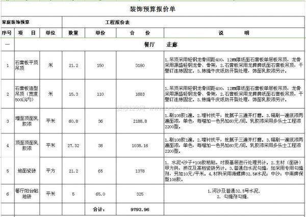 130平米裝修預算表(二)