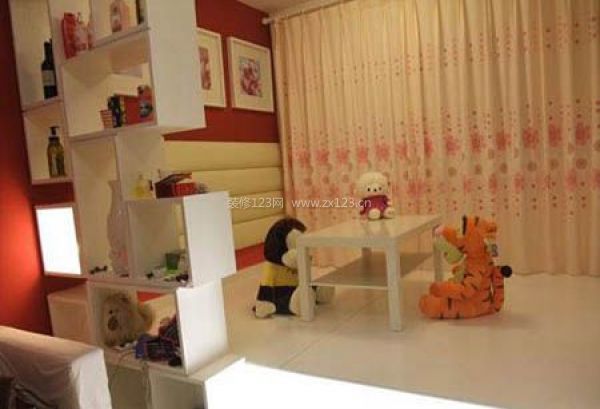 這種小戶型裝修能夠喚起我們兒時的記憶,裝修的完全就是童話世界。從遠端的窗戶開始,窗戶安裝的窗簾是粉色的,上面帶有花朵,往里走一點是一張紅色的小地床,上面也是有花朵的印記。當然,最顯眼的還是我們第一眼能夠看到的小猴子,小猴子是放在沙發上的裝飾物,它背面的這堵墻面上全部貼上了紅色的墻紙。住在這樣的小戶型里面,就如身處童話世界一般,喚起了我們兒時的記憶,進入了純真的天堂。