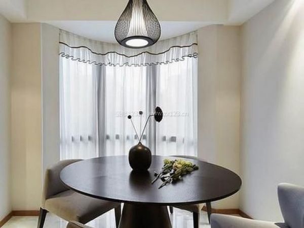 餐廳這樣看更像一個單獨的空間了,弧形飄窗設計,這樣的空間也正好有圓桌搭配,很圓潤很溫馨,特別是一家人在一起吃飯會更顯得家庭氣息濃厚。