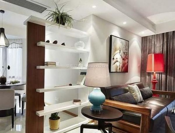 客廳和餐廳之間設置了一個隔斷,既可以用來放置物品也可以放書。很方便。