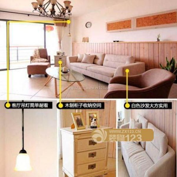 元素:吊燈+木制柜子+白色沙發