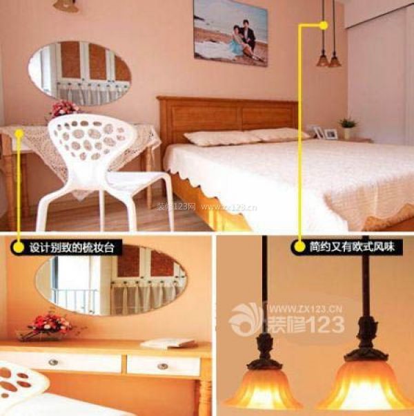 點評:梳妝臺是臥室必備的,這個梳妝臺款式簡單,只有一面鏡子跟一張桌,卻設計得很別致,橘黃色吊燈頗有歐式風味。