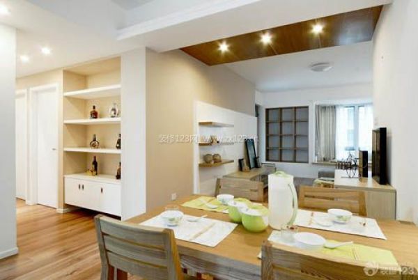 最好能單獨辟出一間做餐廳,但有些住宅并沒有獨立的餐廳,有的是與客廳連在一起,有的則是與廚房連在一起,在這種情況下,可以通過一些裝飾手段來人為地劃分出一個相對獨立的就餐區。如通過吊頂,使就餐區的高度與客廳或廚房不同;通過地面鋪設不同色彩、不同質地、不同高度的裝飾材料,在視覺上把就餐區與客廳或廚房區分開來;通過不同色彩、不同類型的燈光,來界定就餐區的范圍;通過屏、隔斷,在空間上分割出就餐區等等。
