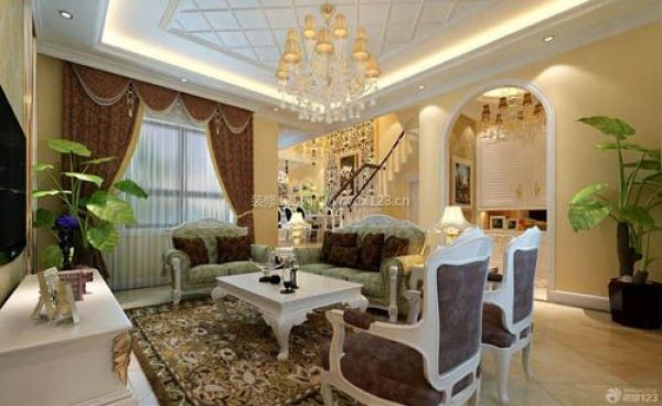 2、如果客廳空間比較大,想要不顯得空曠,那么就選擇兩個比較厚重的大沙發對著擺放,這樣客廳就會顯得很大氣,散件可以搭配兩個同樣比較厚實的腳凳。