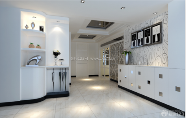 玄關(guān)地面的裝修,應(yīng)采用耐磨、易清洗的材料。家具講求精致與新穎。