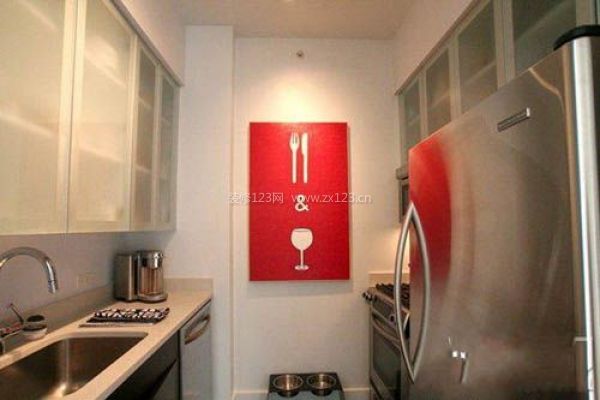 編輯點評:只用銀色和白色裝修的空間,放上紅色的代表廚房的圖畫,讓人增強食欲,精神振奮。而且一片樸素的顏色中,突然出現(xiàn)一塊紅色的色塊,讓人的視線一下子集中到一點,給人以視覺的沖擊。