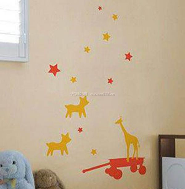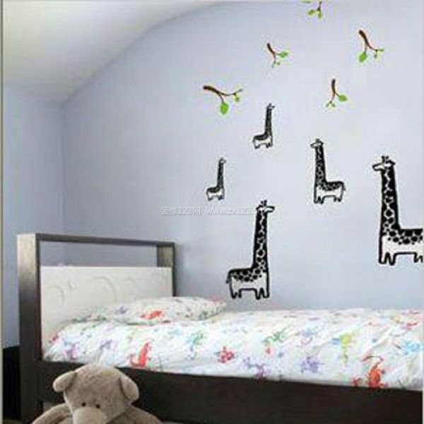 在兒童房里面幾只長頸鹿,很寧靜很自然。