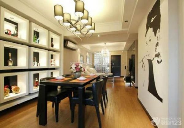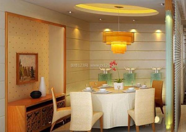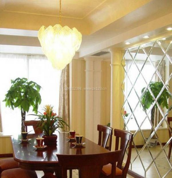 吊燈、壁燈、吸頂燈、筒燈,這些都可作為餐廳燈具的選擇。一般房間的層高若較低,宜選擇筒燈或吸頂燈作主光源。如果餐廳空間狹小,餐桌又靠墻,那就不必選擇吊燈作主光源了,可以借助壁燈與筒燈光線的巧妙配搭來獲得照明的需要,處理得當?shù)脑挘稽c也不比吊燈的美化效果弱。