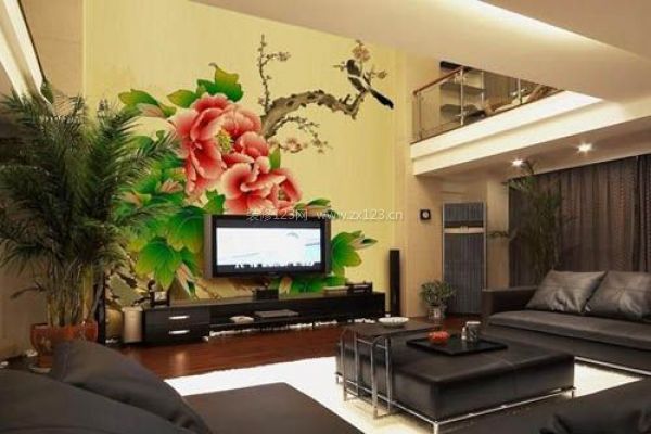 電視背景墻選擇需深于墻面顏色,根據(jù)個人愛好和客廳所選壁畫來綜合選擇。如果造型復(fù)雜、面積不大,建議不要選用花型過大的圖案,這樣顯示不出來花型的效果。