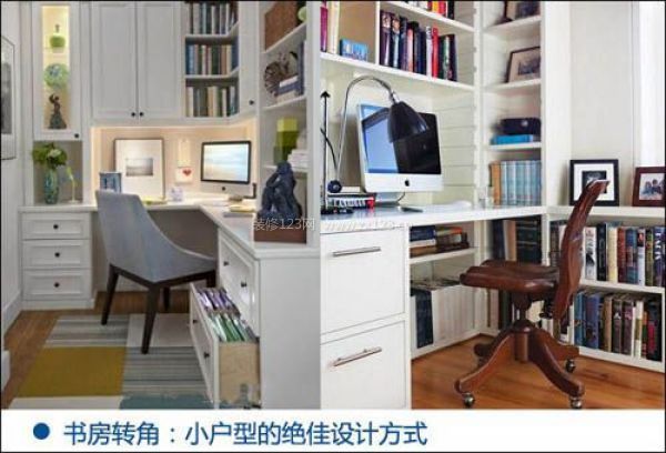 設計技巧:轉(zhuǎn)角書房多應用于小戶型中,可以利用臥室轉(zhuǎn)角、客廳轉(zhuǎn)角、陽臺轉(zhuǎn)角等小空間對其改造,再利用轉(zhuǎn)角的工作臺,設計成一個小戶型的書房。也正好了擺脫了角落空間的單調(diào),增加其豐富性。
