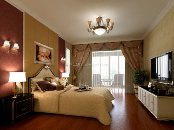 臥室床頭軟包的造型以及兩側(cè)的壁燈顯得整個臥室非常的溫馨,墻面暗紅色壁紙以及地板的使用讓整個臥室顯得女人味十足。臥室的陽臺是與整個臥室想通的,把其布置成了休閑的區(qū)域,在陽光明媚的午后,喝茶、閱讀,或者只是單純地看看風(fēng)景,時光也無比愜意。