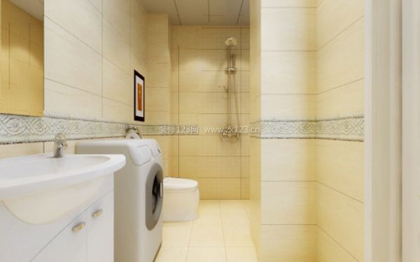設(shè)計亮點:米黃色帶有大理石紋理的墻地磚以及一圈素雅的白色腰線,使得整個空間跳動起來。