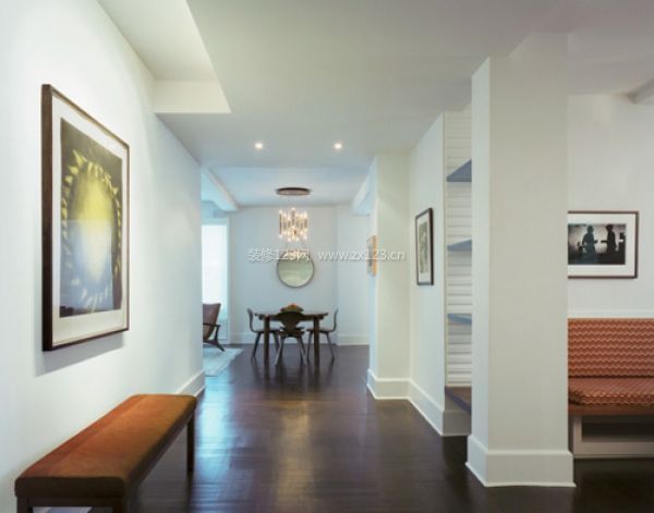 略顯單調的玄關區域用一幅藝術色彩濃烈的裝飾畫裝點,簡單的換鞋凳,讓然一進門就有好心情。