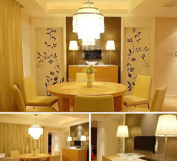 客廳和餐廳雖然都在同一件居室,但是都顯得十分開闊,不會(huì)感到壓抑。角落處的吊燈驅(qū)散了客廳的每一絲黑暗,在暗色的光亮中,慢慢的放松身心。