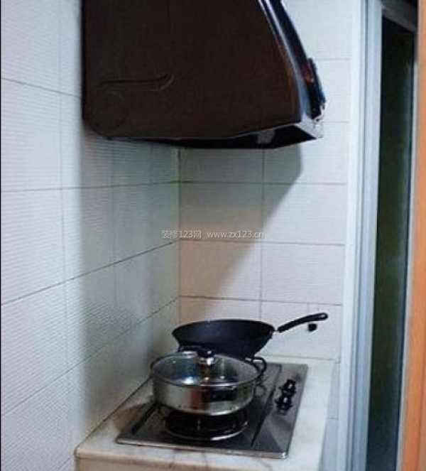 狹小的廚房空間剛好容納做飯的所用工具。