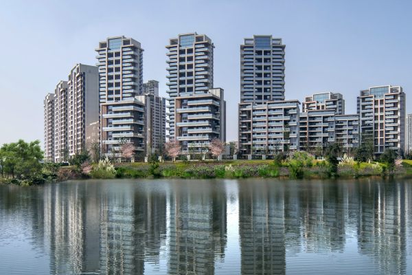 如何將原生態的溪谷風光,得到更大尺度的呈現。這一次,沁云灣面湖而立以50-100m參差不同的樓棟高度形成高低有序的溪谷至美天際線,仿若一片自然生長于溪谷的“天空之森”從林間低處的墅居視野升級成云端高處的俯瞰視野。離星空更近,擁山谷入懷輕云水色里,湖心映見家的倒影。