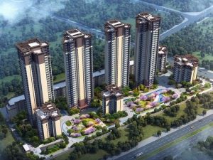 龍騰御錦城共分為兩個地塊,其中1號地塊占地約37畝,包含7棟樓。1、2號樓為3層商業,5、6、7號樓及8號樓A座為約95米、共32層的高層住宅,8號樓B座與9號樓則分別為11層和10層的小高層。