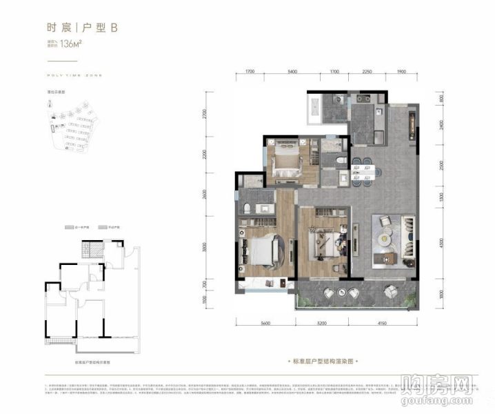 【戶型B】:3室2廳,朝向為南,建面約136㎡,參考單價約20000/㎡