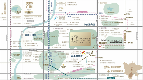 中糧保利天府時區(qū)處于天府新區(qū)三大板塊的交匯處,能同時中央商務(wù)板塊與中央法務(wù)板塊成熟的城市資源配套,又能享受到麓湖板塊的自然生態(tài)資源,項目被天府新區(qū)五大公園環(huán)繞,周邊商業(yè)配套建設(shè)6.2萬方商業(yè)“綠魔方”,休閑購物娛樂聚餐都能就近解決,中糧保利天府時區(qū)是保利攜手中糧入局昌公堰TOD打造項目,于城市中建立慢行步道、高樓林立中打造慢耍公園、繁華街區(qū)里融入慢調(diào)休閑、讓院落生活走進城南,以低密TOD打造一座慢活大城。