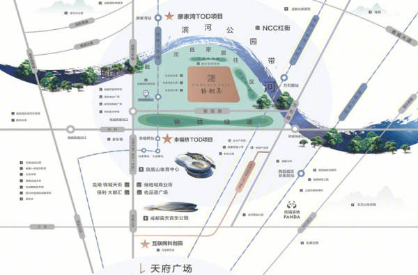 城投置地梧桐集位于成都金牛區,于毗河綠化帶與錦城綠道之間,西側緊鄰5號線北部商貿城站;北側毗河環伺;南靠約22萬m²木龍灣綠道、約14萬m²錦城綠道,與約6萬m²園林交相輝映,構建廣袤生態綠地,塑造一河雙公園理想居家之所。