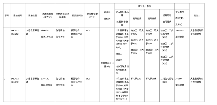 成都土拍最新消息!大邑縣出讓2宗地約129畝,均為70年住宅用地