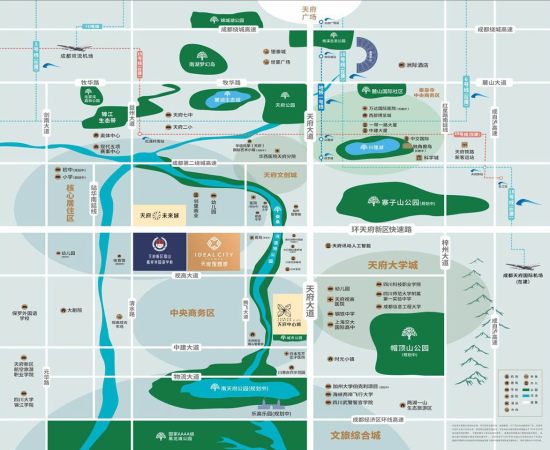 天府理想城備受推崇,在天府新城交通出行、經濟發展、微生活,多家知名品牌地產公司相繼收購土地。 未來,將成為產業鏈千億元、環境優美、宜商宜業的智慧新城。 天府理想城深入剖析南天府發展趨勢的使用價值,以國際化視野、標準化整體規劃為核心理念打造。