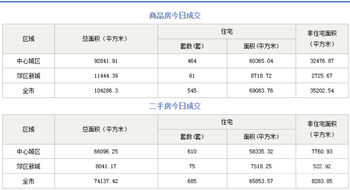 8月11日,成都市住建局住建蓉e辦數據顯示,成都市全市商品房成交(備案)總面積104286.3平方米,其中其中商品住宅成交(備案)545套,商品住宅成交(備案)面積69083.76平方米。二手房成交(備案)總面積74137.42平方米,其中二手住宅成交備案685套,二手住宅成交(備案)面積65853.54平方米。