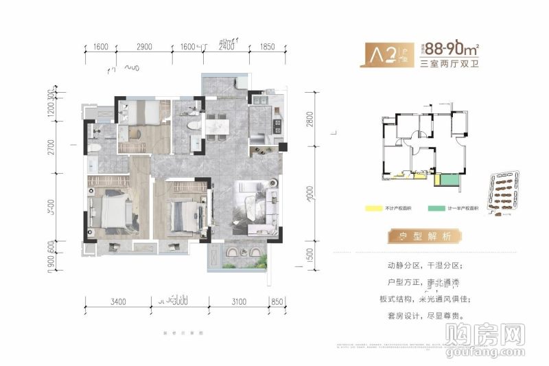 錦繡尚宸A2(3室2廳,90平,南)