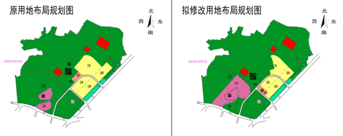 3、原控規3#、4#服務設施用地等面積調整至5#、6#二類住宅用地,建設內容不變,原服務設施用地局部調整為生態用地。