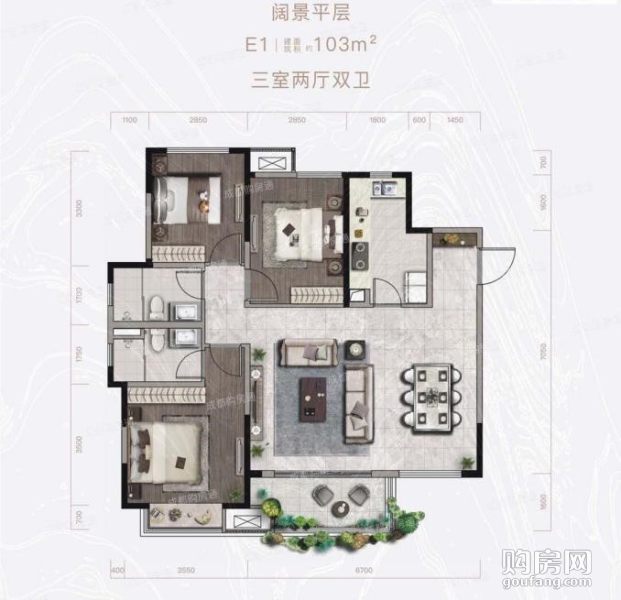 天府萬科城A1戶型(3室2廳,102平,南北)